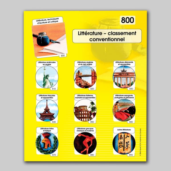Suivez le Guide! est un ensemble d’outils de signalisation qui illustre la Classification Décimale Dewey *. Il est conçu pour assister le classment des livres dans les bibliothèques scolaires et publiques. Ce matériel guide efficacement les usagers dans leurs recherches documentaires sur les rayons. Ces attrayantes affiches couleur et étiquettes de rebord de tablette illustrent clairement les classes Dewey et leurs 100 divisions.